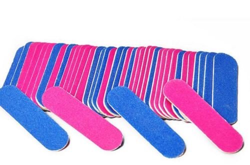 Handy Mini Nail File Double Sided 100/240 Crescent Pedicure Manicure Brand New Perfect to put in your handbag or for when travelling! Professional wood Sandpaper Nail File Essential nail art tools for filing nails before nail treatment / nail extension / manicure procedures Can be used to file natural nails false nails nail extensions etc. Perfect for finger care woodworking and salon usage Length: 5cm Width: 1.3cm Thickness:1.5mm grit:100/240 colour :blue and pink (double sided)