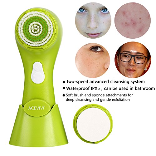 ACEVIVI Wateproof 2-in-1 Electric Facial Brush Cleansing System Massager Face Cleanser Brush with Stand Green, Vibration Type Cleansing Instrument is available in Cleansing Appliances & Brushes
