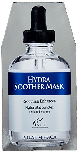 The A.H.C Hydra Soother Mask improve hydration , Relieve the skin Stress and 100% Cellulose Mask Sheet from the plant fiber. gives a strong protection and It rejuvenates delicate skin , so it helps your skin condition to remain silky and healthy. DIRECTIONS : 1. Wash your face and dry it, then refine your skin texture with toner. 2. Apply the mask sheet on your face and hold it 20~30minutes while taking a rest. 3. Take off the mask and tap your face till the remains is fully absorbed. INGREDIENTS :Water, Glycerin, Alcohol, Sodium Hyaluronate, Hydrolyzed Collagen, Centella Asiatica Extract, Ginkgo Biloba Leaf Extract and Panax Ginseng Root Extract, Sodium PCA, PEG 60, Hydrogenated Castor Oil, Xanthan Gum, Cyclopentasiloxane, Triethanolamine, Acrylates/C10 30 Alkyl Acrylate Crosspolymer, Carbomer, Disodium EDTA, Phenoxyethanol, Fragrance Net Wt. 1.06 oz. / 30 g x 5