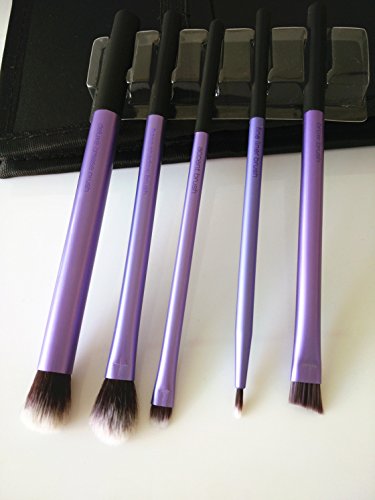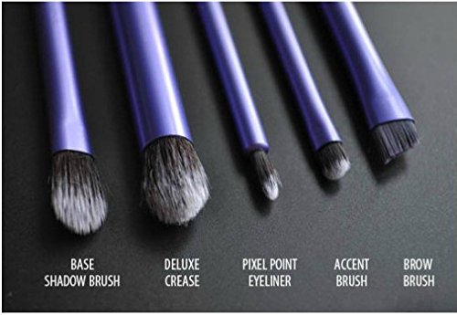 Since taklon is synthetic, it's 100% cruelty-free. The soft fibers help create a flawless, high-definition finish in any type of light, from sunlight to harsh indoor lighting. The color-coded system corresponds to the key steps of makeup application so you can create a flawless base (copper), enhanced eyes (purple), and the perfect finish like a pro (pink). Each brush head is hand-cut to the perfect shape, allowing for precise application from dense coverage to a soft, delicate finish. The collection is suitable for a wide range of products and every makeup need - from powders, creams, and liquids to mineral makeup, highlighter, and shimmer. Brush names on the handles make for easy reference when creating your favorite look.