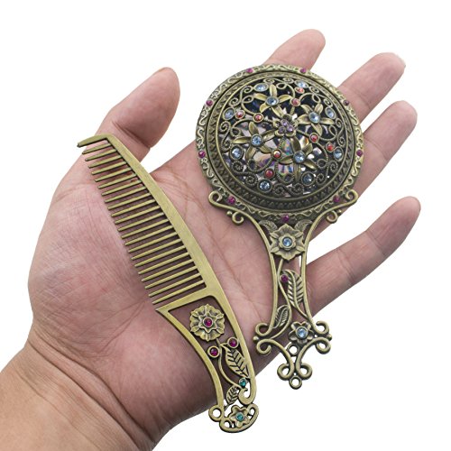 Bronze Antique Hand Mirror and Comb Set is small enough to fit easily into a makeup or travel bag and ready for a beautiful presentation at any gathering or event. It is also a beautiful addition to the dressing table. This set includes a mirror and a comb. Each piece is antiqued. Excellent design of this comb can make you to comb your hair more easily.