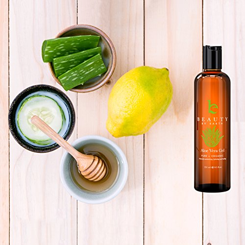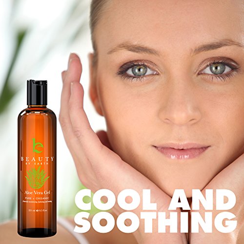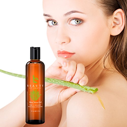 Aloe Vera Gel - Beauty by Earth Organic & Pure Aloe Vera Gel for After Sun Care - Uses Include Treatment of Burns, Rashes, Bites, Cooling, Hydration, Moisturizing or as a Light Hold Hair Gel. Best Aloe For DIY Hair & Skincare Products. Made in the USA. 251ml is available in After Sun