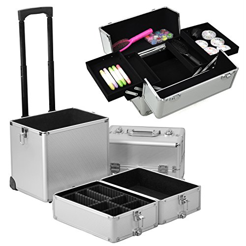 Verified Purchase This review is from: All in 1 Pro Large Aluminium Hairdressing Makeup Vanity Toiletry Storage Nail Case Box Beauty Cosmetics Trolley 4 in 1 (Silver) (Misc.)