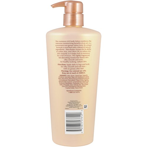 The moisture-rich body lotion combines the intensive moisturizing benefits of an oil, in convenient non-greasy lotion form. Its unique formula is enriched with a blend of natural ingredients - shea butter, known for its ability to soften skin, and olive oil, to relieve dry skin instantly. This lightly fragranced, fast-absorbing moisturizer leaves skin silky-smooth and even, for healthy looking, radiant skin.Helps lock in moisture for a full 24 hours Softens and smoothesApply daily to legs and body for silky smooth and soft skin - with no greasy after feel.