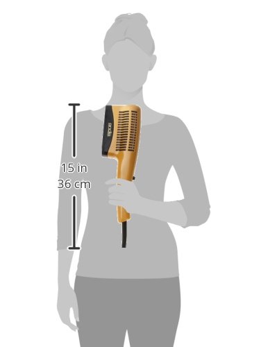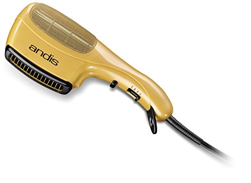 Andis Ceramic Ionic Hair Dryer with even-heat ceramic technology preserves natural oils and seals in moisture - creating smooth, silky, frizz-free hair; Ionic dries hair faster by breaking up water molecules; Cool shot button to lock in style; High-velocity airflow; 3 air/heat settings with cool shot button; 1875 Watts; Seek, gold metallic design; Includes 100 percent boar bristle brush attachment, Fine tooth attachment pick, Wide tooth attachment pick.