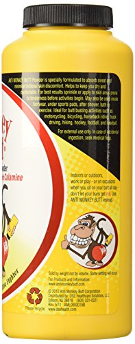 Anti Monkey Butt Powder is specially formulated to absorb sweat and minimize frictional skin discomfort. Helps to keep you dry and comfortable. Ideal for butt busting activities such as motorcycling, bicycling, horseback riding, truck driving, hiking, hockey, football, and baseball.