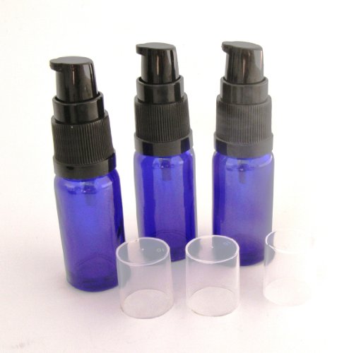Verified Purchase This review is from: 3 x 50ml Blue Glass Aromatherapy Bottle with BLACK treatment pump/lotion pump. Top quality empty blue glass bottle suitable for Aromatherapy, Art, Crafts, First Aid, Travel Size Bottle for Beauty Gels, Serums and Lotions (Personal Care)
