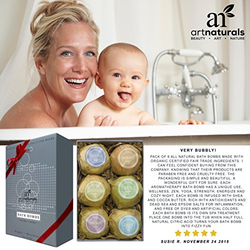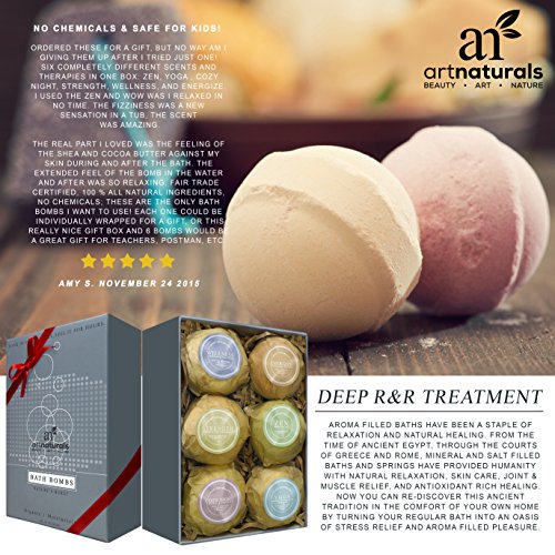 Art Naturals Bath Bombs Gift Set - 6 Ultra Lush Essential Oil Handmade Spa Bomb Fizzies - Organic & Natural Ingredients & Shea Butter for Moisturizing Dry Skin - Relaxation In a Box - Best Gift Idea is available in Bath Bombs