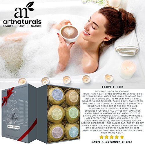 Welcome to my review of : Art Naturals Bath Bombs Gift Set - 6 Ultra Lush Essential Oil Handmade Spa Bomb Fizzies - Organic & Natural Ingredients & Shea Butter for Moisturizing Dry Skin - Relaxation In a Box - Best Gift Idea.
