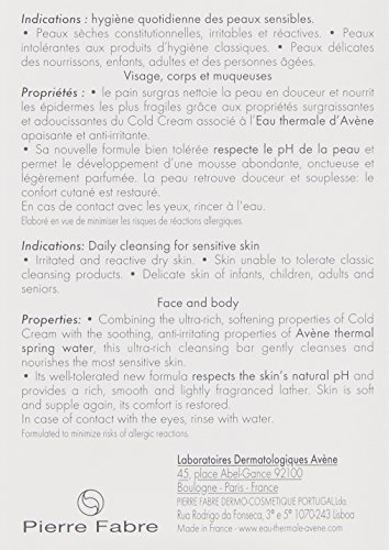 Particularly unctuous and delicately fragranced, the ultra-rich bar with Cold Cream gently cleanses the skin, respects the hydrolipidic film, and leaves an extremely comfortable protective film on the skin. Formulated soap-free, it respects the physiological pH of dry skin.Soap-freeHypoallergenic and non-comedogenic skin pH=6.5 Properties Soothing and Anti-irritating Thanks to its richness in Avène Thermal Spring Water. Nourishing and Protective Thanks to its high cold cream content and its ultra-rich agents.