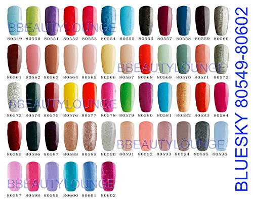 PLEASE SEND ME A MESSAGE ON AMAZON WITH YOUR CHOICE OF COLOURS 36W Black UV Lamp UK Plug Bluesky 10ml Top Lamp; 10ml Base Coat set CHOOSE 3 COLOURS FROM OUR RANGE OF OVER 1,000 COLOURS 15 pcs Bluesky Isopropyl cleanser Wipes. Please note due to screen resolution some of the pictures may not entirely look like you would expect.