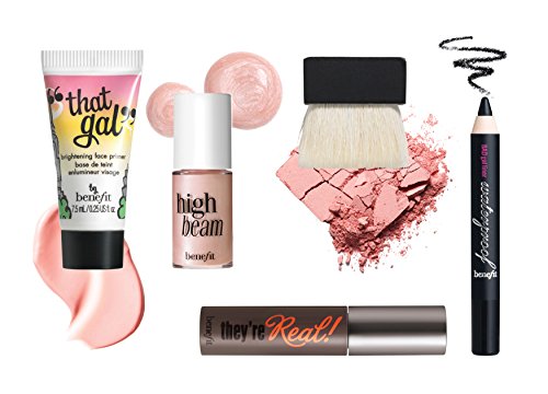 What it is: A best and brightest total-face makeup kit. What it does: Brighten up your entire look with these brilliant beautifiers! These luminous bestsellers will give your face and cheeks a supermodel glow-and open your eyes with sexy definition. This set contains: - 0.25 oz "that gal" Brightening Face Primer - 0.13 oz High Beam Luminescent Complexion Enhancer - 0.1 oz Dandelion Brightening Face Powder - Powder Brush - 0.1 oz They're Real! Beyond Mascara in Black - 0.02 oz Bad Gal Liner Waterproof Eye Pencil in Extra Black Suggested Usage: -Pat "that gal" on throughout the day to re-brighten your complexion.