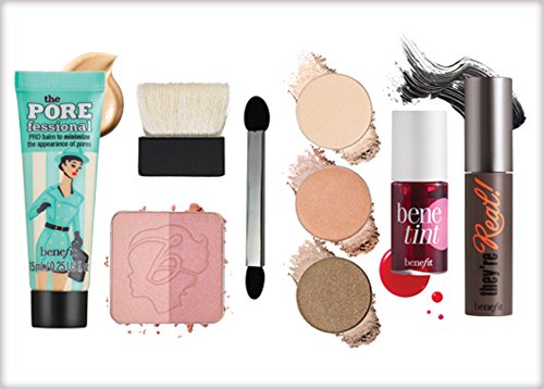 ABOUT BENEFIT Benefit combine candy colour hues with all American charm to create their whimsical cosmetic line. After reaching cult status with their multipurpose Benetint, Jean and Jane Ford forged ahead, creating everything from mascaras, to face primers, blushers and lip glosses; all encased in vintage style packaging, effortlessly capturing the brand's frivolous nature. Life Of The Party by Benefit Complete mini make-up kit in one Mini perfecting prime Porefessional Three pigmented natural eye shadows Dual ended eye shadow brush Blush and bronzer to highlight and contour Angled blusher brush Mini Benefit lip and cheek stain Mini They're Real lengthening mascara *Worth value based on RRP per ml/gram of standard sized product. Price correct as of September 2015