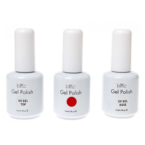 BMC UV LED Gel Nail Art Polish 3pc Kit One Color Red Top Base Coat Manicure Set is available in Nail Salon Sets