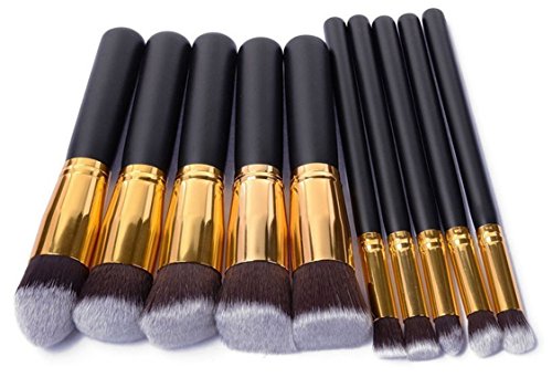 BS-MALL Premium Synthetic Kabuki Makeup Brush Set Cosmetics Foundation Blending Blush Eyeliner Face Powder Brush Makeup Brush Kit (10pcs, Golden Black) is available in Brush Sets