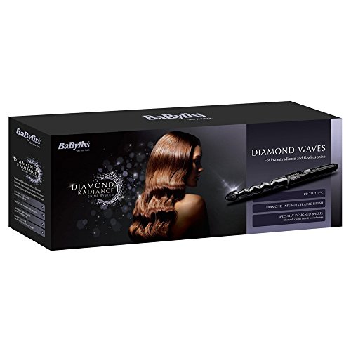 Create perfect waves and curls with the BaByliss Diamond Waves. Offering salon performance, the BaByliss Diamond Waves features the exceptional Diamond Radiance Shine System with luxuriously smooth diamond infused ceramic to total transform you hair. Create flawless styles by wrapping your hair around the specially designed, luxuriously smooth, diamond infused ceramic barrel. You'll effortlessly create glamorous curls and waves that are kink free and with brilliant shine! The BaByliss Diamond Waves has a top salon temperature of 210°C , with 5 digital temperature settings making it ideal for all hair types. Advanced CeramicsTM deliver professional, fast heat up with you Diamond Waves wand ready to use in just 40 seconds.