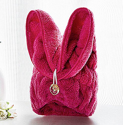 Bath Towel Hair Dry Hat Cap Hair Drying Towel Lady Bath Tool Rabbit Rose Red is available in Drying Hoods