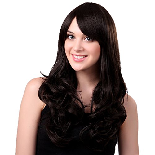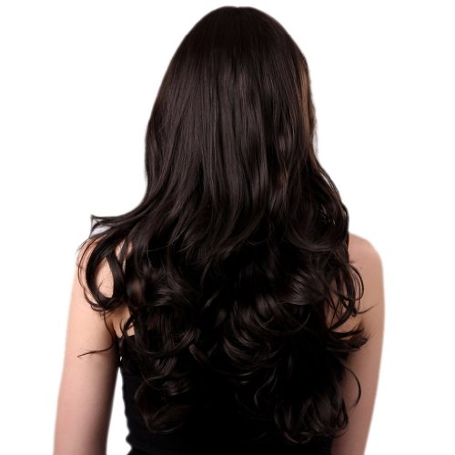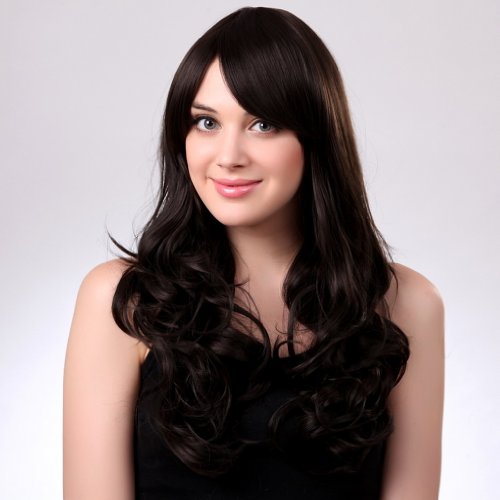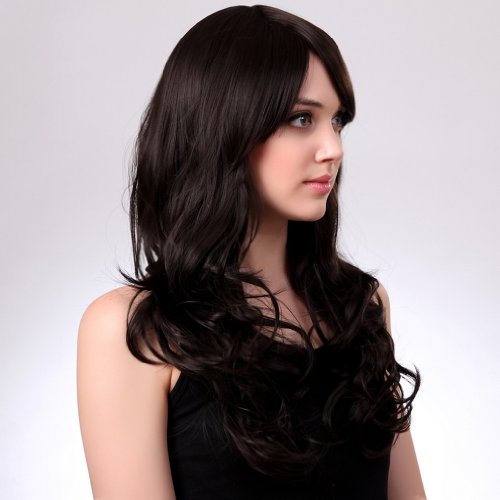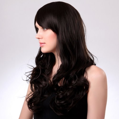 Bigood 68cm long curly Inclined bang Charming Temperament Fluffy Black wigs is available in Polystyrene Heads