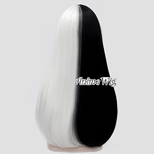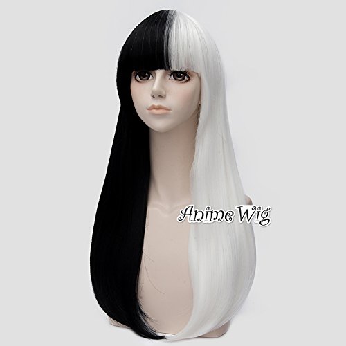 65cm Long Straight Heat Resistant Black Mixed White Anime Lolita Cosplay Wig+Cap is available in Wigs