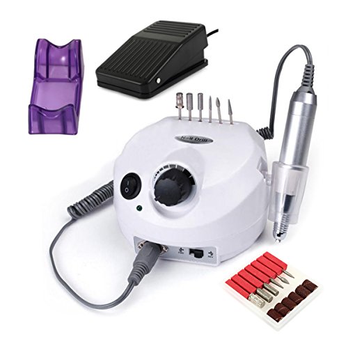 Besmall Electric Nail Drill Manicure Pedicure File Acrylic Kit Set Bits Gel Polish White (main control machine) & Sliver (hand piece) Plus Foot Petal is available in Nail Art Sets