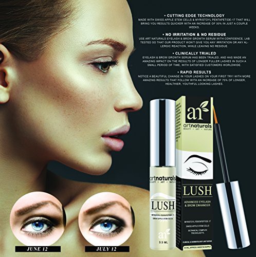 Best Eyelash Growth Serum (3.5ml) - Thicker, Longer Eyelashes & Eyebrows with LUSH By Art Naturals, No Irritation, Dermatologist Tested Product, Revolutionary Pentapeptide-17 & Swiss Apple Stem Cells is available in Eyelash Treatments