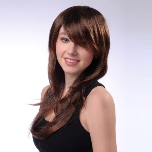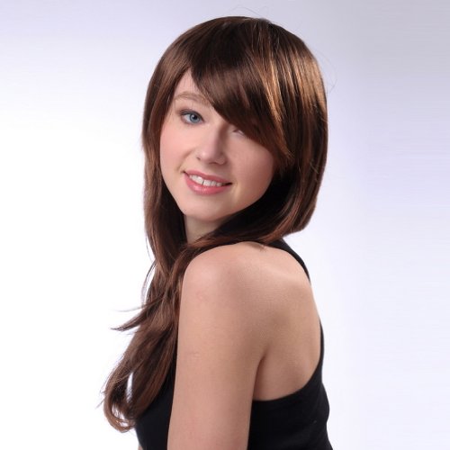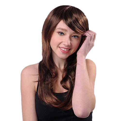 Bigood 56cm Inclined bang natural elegant temperament long straight Brown wigs is available in Polystyrene Heads