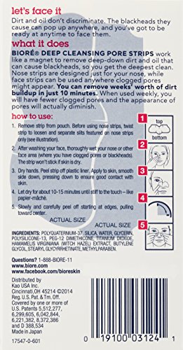 INDICATIONS: Biore deep cleansing pore strips actually diminish the appearance of your pores. Biore nose strips have an innovative slit design for improved fit. Do not use more often than once every three days.