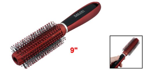 Red Black Plastic Nonslip Handle Round Brush Wavy Curly Hair Comb 9" Long