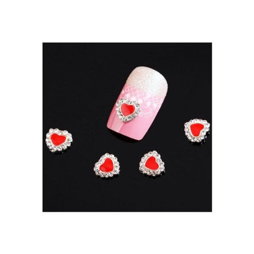 10 PCS Bling Bling RED HEART Alloy 3D Rhinestone/Gem Design Nail Art Decoration is available in Rhinestones