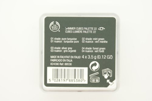 This review is from: The Body Shop 22 Shimmer Cube Palette 4x3.5g: 01 Shade Pure Turquoise, 02 Shade Mint Green, 03 Shade Silver Grey, 04 Shade Forest Green (Misc.)