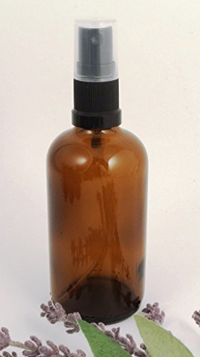 100ml AMBER Glass Bottle with Black Atomiser Spray & Clear Cap. Dark Glass Bottles are used to store Essential Oils / Aromatherapy Blends as they protect the oils from sunlight, helping to keep them fresher for longer.