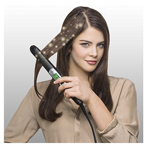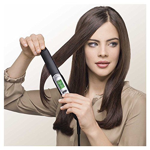 This straightener looks good and with the digital display seems very modern and up to date. The cord is a reasonable length. It is very quick to heat up and the temperature display shows when it reaches the temperature you want. I really like that it switches off automatically as it is so easy to leave straighteners on. There is a range of temperatures which are easy to select and it is good that your last used settings are saved meaning you can use straight away without resetting once you have chosen your preference. If you are having problems with one area of hair the 'c' boost button will boost temperature for a short time to enable you to fix it to your satisfaction. There is also a satin ions button but it is difficult to judge how effective this is.I note that it can also be used for loose curls and waves but haven't tried that. I was disappointed that at straightener of this quality did not come with stand and bag. It does boast that it is cool to touch but I haven't been able...