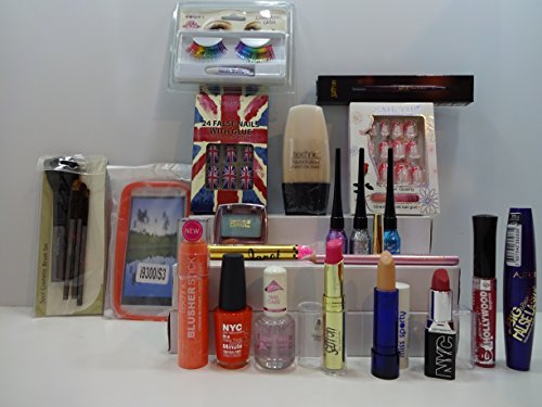 Christmas Sale ~ 20pc Make Up Gift Bag - Gift Set Make Up Products Mix Brands + Nails + Eyelashes + Brush Set In Gift Bag, Ready To Gift + Free Mobile Phone Back Cover Included ~ Special Price ~~0040~~ is available in Lipsticks