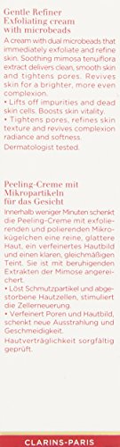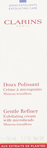Clarins 50ml Gentle Refiner Exfoliating Cream It's good to glow! Clarins dual-action microbeads-with soothing Mimosa extract- makes a clean sweep of dull, flaky surface cells while tightening pores. Skin emerges fresh, smooth and refined. Twice a week delivers the most radiant results.