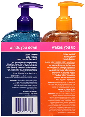 Contains one morning burst cleanser, 8 fluid ounce, and one night relaxing cleanser, 8 fluid ounce