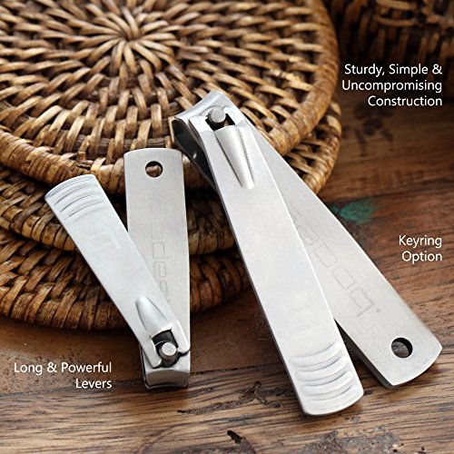 Nail Clippers Set of 2 Stainless Steel for Both Male and Female Including a Bonus Storage Wallet and Nail Block by Bodest - Wide Opening and Sharp Blades For Fingernails & Toenails. is available in Nail Salon Sets, Nail Clippers