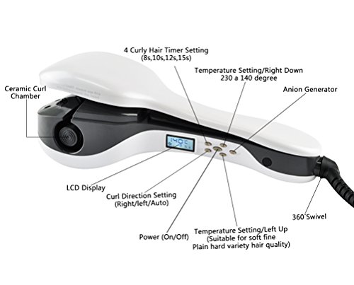 CoFashion Fashion LCD Display Anion Harmless Ceramic Hair Curling Wand Automatic Easy Time-saving Smart Thermostat Hair Curling Iron Wave Curl Curler Studio Hair Beauty Salon Valentine's Day Gift White Pear Exquisite Packaging Box is available in Crimpers
