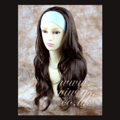Dark Coffee Brown Long 3/4 Wig Fall Hairpiece Wavy Layered Hair Piece is available in Wigs