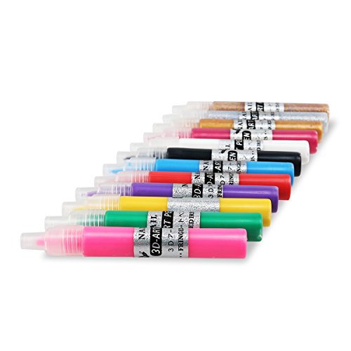 Description Want to change your look more often? Now, we will recommend you a set of 12 colors 3D Nail Art DIY Painting Polish Pens, which adopt UV gel acrylic tips, and can be used to create your own design on your finger or toe nails. They are perfect for natural nails, false nails and 3D nail art, and can be applied over another color and dry just like nail polish.