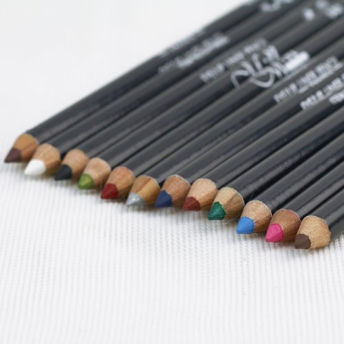 I bought these 12 Eyeliner Pencils for £2.57. Would have given five star if there was a black eyeliner included in the pack of twelve, but sadly there wasn't (and I'm always after a good black kohl eyeliner). So although the item's description says "Colour: as show in the pictures" that was not the case. I received two pink (019) and two red (022), one white (033), one silver (034), one green/gold (040), one dark green (038), one light blue (036), one dark blue (035), one light brown (006) and one dark brown (016). It was odd to receive six pencils on the red spectrum, as they're meant to be eyeliner, not lip pencils. They're certainly advertised as eyeliner products!