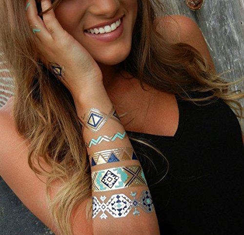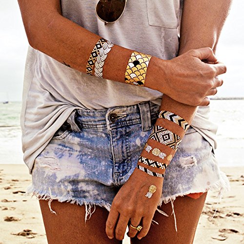 CrazyGadget® Metallic Temporary Tattoos Silver Gold Black Colour Flash Body Jewellery Necklace Bracelets Sticker Sheet (Design 004) is available in Temporary Tattoos