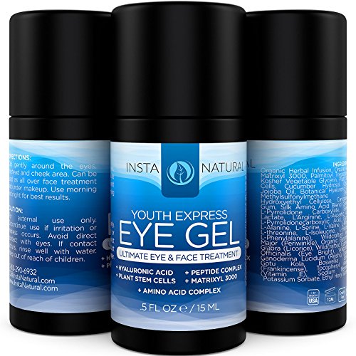 Eye Cream for Wrinkles, Dark Circles, Puffiness & Bags - BEST 100% Natural Anti-Aging Gel With Hyaluronic Acid, Organic Jojoba Oil & MSM - Great for All Skin Types - InstaNatural - 0.5 OZ Travel Size is available in Gels