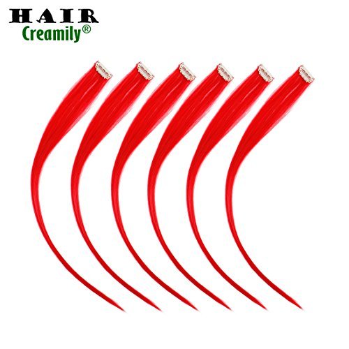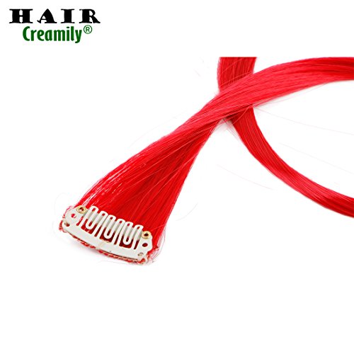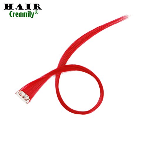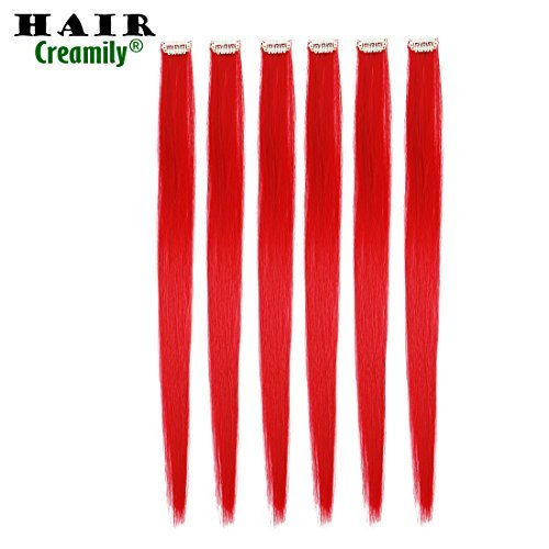 Creamily 6 Pieces of Red 20" Inches Multi-colors Party Highlights Clip in Synthetic Hair Extensions is available in Hair Extensions