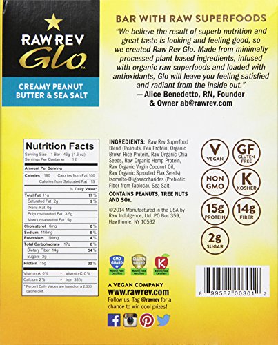 Bar With Raw Superfoods "We believe the result of superb nutrition and great taste is looking and feeling good, so we created Raw Rev Glo. Made from minimally processed plant based ingredients, infused with organic raw superfoods and loaded with antioxida