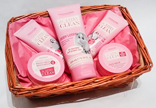 Creightons Squeeky Clean Pink Luxury Pamper Hamper - Organza Lined Basket - Cellophane & Ribbon Gift Wrapped is available in Sets
