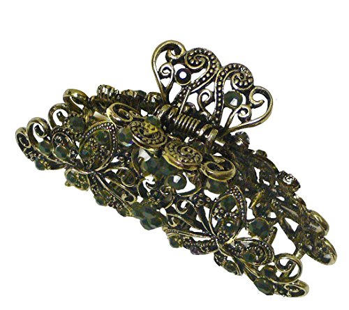 Metal Crystal Jaw Clip with Butterflies Design in Antique Gold Tone Plating RW86410-6132jet is available in Claws
