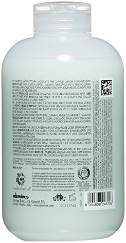 Davines is the Italian cult haircare label taking the salons of the world by storm. They use only ethical production methods, natural ingredients, eco packaging and decades of scientific knowledge to treat and nourish every kind of hair. For long or damaged hair: Designed specifically for long, brittle, breakage prone hair to cleanse and moisturise with lentil seed extract to give it the elasticity and breakage protection it needs. To use: Apply to wet hair, massaging into a rich lather before rinsing thoroughly. Ingredients: Water, Disodium Laureth Sulfosuccinate, Glycerin, Sodium Cocoyl Isethionate, Sodium Lauroyl Methyl Isethionate, Cocamidopropyl Betaine, Sodium Lauroyl Sarcoinate, Sodium Lauryl Sulfoacetate, Coco-glucoside, Benzyl Alcohol, Phenethyl Benzoate, Panthenol, Acrylates/c10-30 Alkyl Acrylate Crosspolymer, Glyceryl Oleate, Fragrance, Gycol Disterate, Sodium Methyl 2-sulfolaurate, Sodium Benzoate, Dicaprylyl Ether, Lauryl Alcohol, Polyquaternium-7, Polyquaternium-10, Amodimethicone/silsequixane Copolymer, Trisodium Ethylnediamine Disuccinate, Disodium Edta, Disodium 2-sulfolaurate, Linalool, Citric Acid, Trideceth-5, Hexyl Cinnamal, Glyceryl Stearate, Sodium Hydroxide, Lens Esculenta (Lentil) Seed Extract, Sodium Chloride, Geraniol, Limonene, Ci 61570 / Green 5, C1 19140 / Yellow 5.