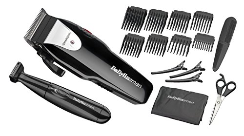 Mains or cordless operation - use with the cord for maintained power or cordless for total flexibility in use Precision honed high grade stainless steel blades for a sharp precise cut Taper control with five-position lever for fine cut adjustment Eight clipper cutting guides (grades 1-8), for a variety of lengths Battery trimmer with 2 x five-position comb guides (2-20 mm) The BaByliss For Men 21 piece Turbo Power Pro Grooming kit includes everything you need to achieve a professional cut from home and is ideal for the whole family. Use the clipper corded for continuous power while plugged into the mains or cordless for total flexibility and control during use. The clipper set also features eight comb guides, grades 1-8, for a variety of different lengths which allows you to choose and define your style and boasts precision honed, high grade stainless steel blades for optimum sharpness and precision cutting. The five position taper is ideal for fine cut adjustment and there is even a turbo boost button for extra power to cut through your extra thick hair. The battery powered trimmer is ideal for tidying your neckline; side burns and also comes with two five-position comb guides ideal for trimming your beard and facial hair. It also includes a barber's comb, a moustache comb, scissors, three sectioning clips and a cape so you can set-up your own barber shop in the comfort of your own home. BaByliss tools are used in hair and beauty salons and BaByliss use this expertise to create top performance products. All BaByliss For Men products are thoroughly tested to give the ideal performance and results at home.