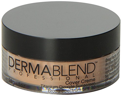 Full Coverage Foundation for moderate to major skin flaws. Step 1 - Dermablend Cover Creme is an improved lightweight creme formula with high purity pigments and natural skin tone shades. Dermablend Cover Creme delivers a flawless complexion and 12 hours of consistent color wear. Step 2 - Dermablend Setting Powder enhances performance for up to 16 hours of consistent color wear. Improved texture-Glides on easily and evenly. Skin looks fresh, feels soft and velvety smooth. Skin Benefit-All day hydration. Suitable for sensitive skin. Sun Protection-SPF 30 sunscreen Result - A flawless even complexion for up to 16 hours of consistent color wear. Helps prevent sunburn. Higher SPF gives more sunburn protection. Directions: Apply Dermablend Cover Creme evenly prior to sun exposure. For external use only. When using this product keep out of eyes. Rinse with water to remove. Stop use and ask a doctor if rash or irritation develops and lasts. Keep out of reach of children. If swallowed, get medical help or contact a poison Control Center right away.Children under 6 months of age: ask a doctor. Net Weight: 1 oz./28 g Ingredients: Active Ingredients: Titanium Dioxide 3%. Other Ingredients: Mineral Oil, Talc, Beeswax, Isopropyl Palmitate, Stearyl Stearate, Kaolin, Mannesium Carbonate, Copernicia Cerifera (Carnauba) Wax, Allantoin, Microcrystalline Wax, Lauroyl Lysine May Contain: Titanium Dioxide , Barium Sulfate, Iron Oxides. FlL B26759/1