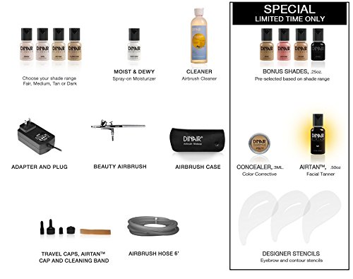 Verified Purchase This review is from: Dinair Personal Pro Airbrush makeup Kit & Medium colour set | 8pc Foundation Set | New Digital Pro compressor | Pro Dinair CX Airbrush | Stencils | Cleaner | Full UK Warranty (Misc.)